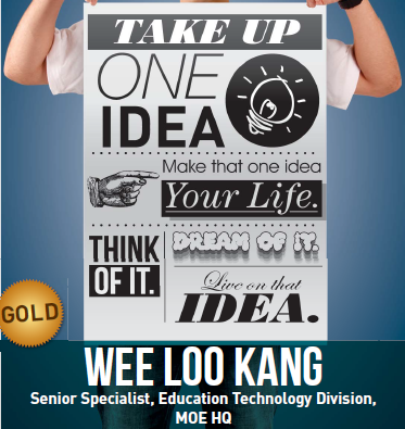 To celebrate your win of the Best Ideator Award at the PS21 ExCEL Convention 2012, we have earlier informed you that we would like to feature you in a poster to be displayed in the lifts at MOE HQ. The purpose of these posters is to not only recognise your efforts but also to serve as an inspiration for others on the journey towards innovation and excellence in public service. We would like to thank you for contributing the quotes as well as taking the time off to come down for the photo shoot session.