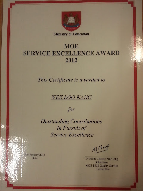 - Appreciation Award by Academy of Singapore Teachers 2011