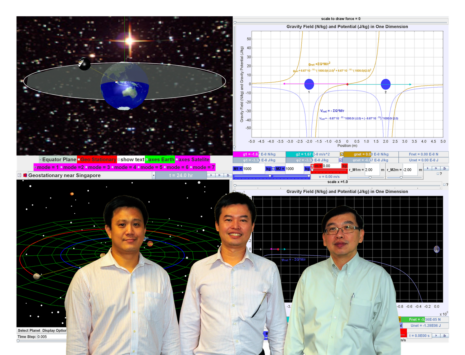 - Geostationary Satellite Model: Added different modes of visualization, options for geostationary orbit, and a 3D rendering, customized to Singapore's geographical location, to help students visualize the real world.