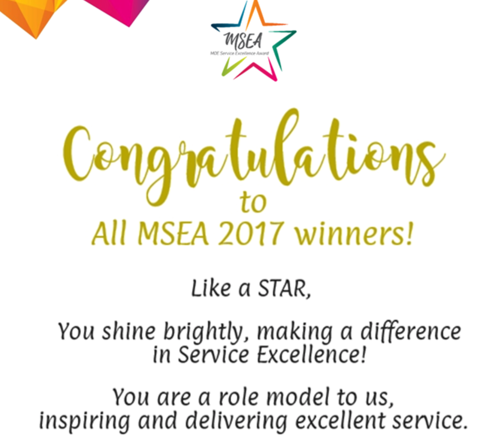 Congratulations to all MOE Service Excellence Award (MSEA) 2017 Winners!