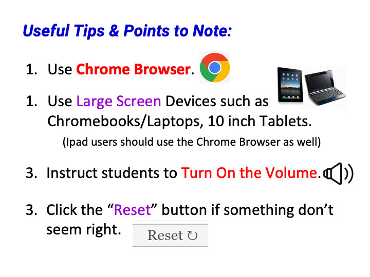 - Concurrently hands on try by all students - can listen to the sound of their responses in the IT gadgets to judge mastery level