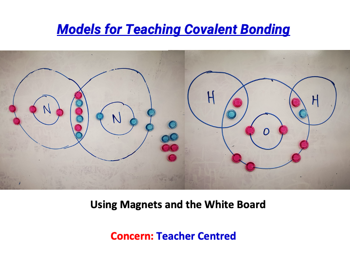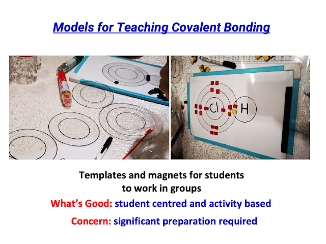 - Did a physical (tactile) version using laminated transparency cards for T&L of Covalent Bonding in visualisation: https://drive.google.com/file/d/1yDFKTuRrquUSNQEGXAYbVHKB1m_3wODD/view?usp=sharing