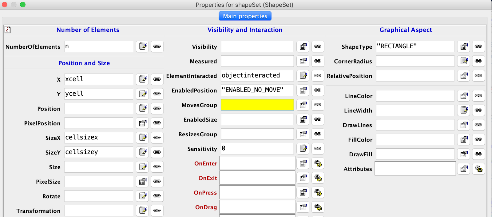 - double click on the shapeSet and add the properties into the respective fields