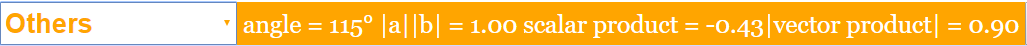 Scalar product: a∙b = a| |b| cos(a|b), with a|b the intersecting angle.