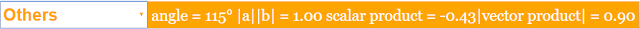 - Display of Vector Properties: The applet displays the "Intersecting angle" in degrees and the "Product of absolute values" (which is always 1 as the vectors have unit length) for the initial two vectors. It also shows the "Scalar product" and the "Absolute value of the vector product".