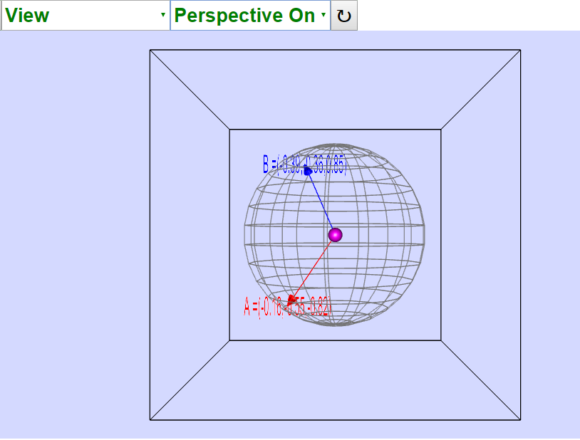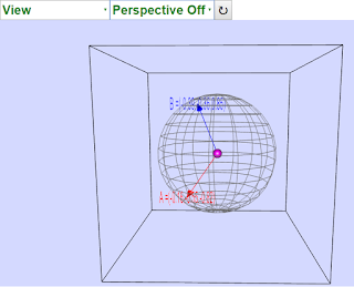 E7: Close other options and choose the vector product a x b which will appear as a black arrow. Rotate the frame to look along the vector product. Observe that you will look perpendicular at the common plane of a and b (both vectors should touch the sphere periphery).