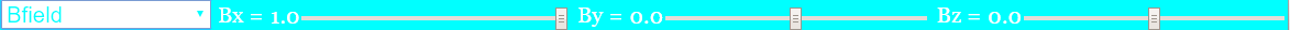 - "At the right side of the window a number of sliders are positioned, which determine the vectors of velocity (v), electric (E) and magnetic (B) field."