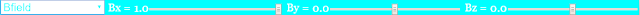 - In the default setting of the simulation, there is a homogeneous magnetic field of value 1 oriented along the x-axis, and there is no electric field present. The electron is initially positioned at the origin with an initial velocity vector in the z-direction of value 1/2.