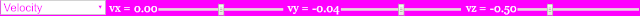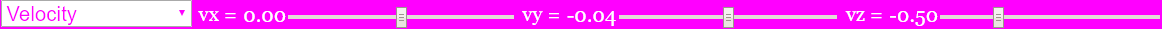 At the right side of the window a number of sliders are positioned, which determine the vectors of velocity (v), electric (E) and magnetic (B) field. In default vy and vz change periodically while the electron revolves in the yz-plane.