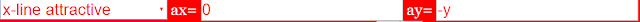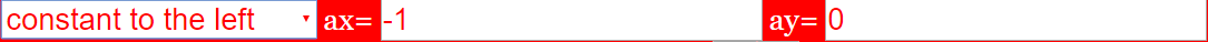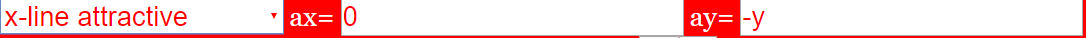 In a combobox one can choose among many predefined fields. The type of field and the components of its vectors are stated. The second case is empty for your own data insertions. Alternatively you can edit data of predefined cases in the a_x and a_y text fields (do not forget to press the Enter button after changes!)