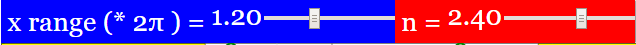 - Slider 'x range': This slider adjusts the range of x displayed in the left window, from "0.1 and 5 times 2π." The default value is "0.5, limiting the range of the function to one half period."