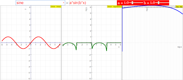 Function in Linear and Logarithmic Coordinate Systems JavaScript Simulation Applet HTML5