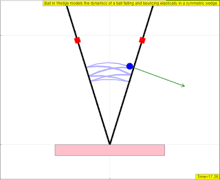 - "Ball in Wedge models the dynamics of a ball falling and bouncing elastically in a symmetric wedge... the ball-wedge system exhibits a rich array of periodic and chaotic behavior and is of current research interest."