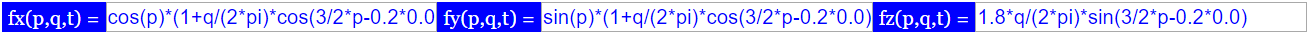 - Coordinate Functions (fx, fy, fz): The mathematical functions that define the x, y, and z coordinates of the points on the 3D surface in terms of the parameters p and q (and potentially time t).