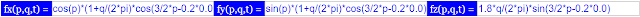 - The range of variables p and q extends from -π to +π. This range is significant because it creates full cycles in the periodic trigonometric functions used in the formulas, ensuring the generation of closed or repeating sections of the surface.