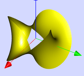 This function plotter displays animated surfaces in 3D that may be closed or intersecting. Its predefined function presents open or closed twisted bands, among them the famous Möbius strip.