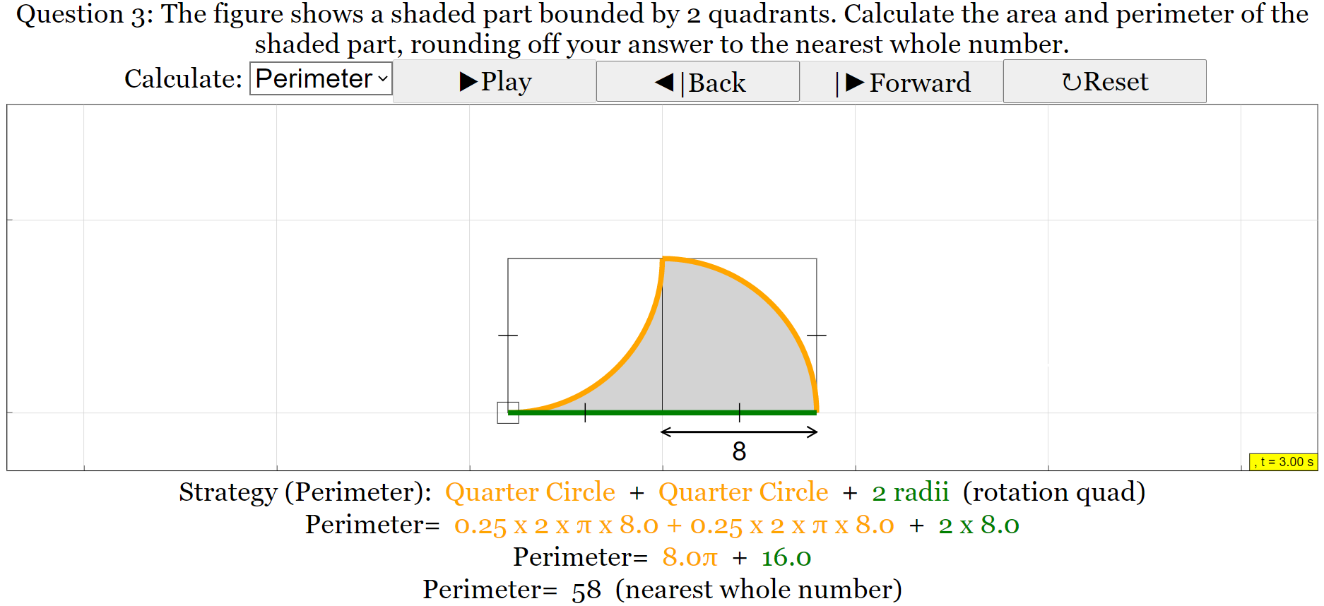 - Explain how the design of the "Circle Plus Question 03" applet, particularly the adjustable square and the animation, might help students develop a deeper understanding of area and perimeter.