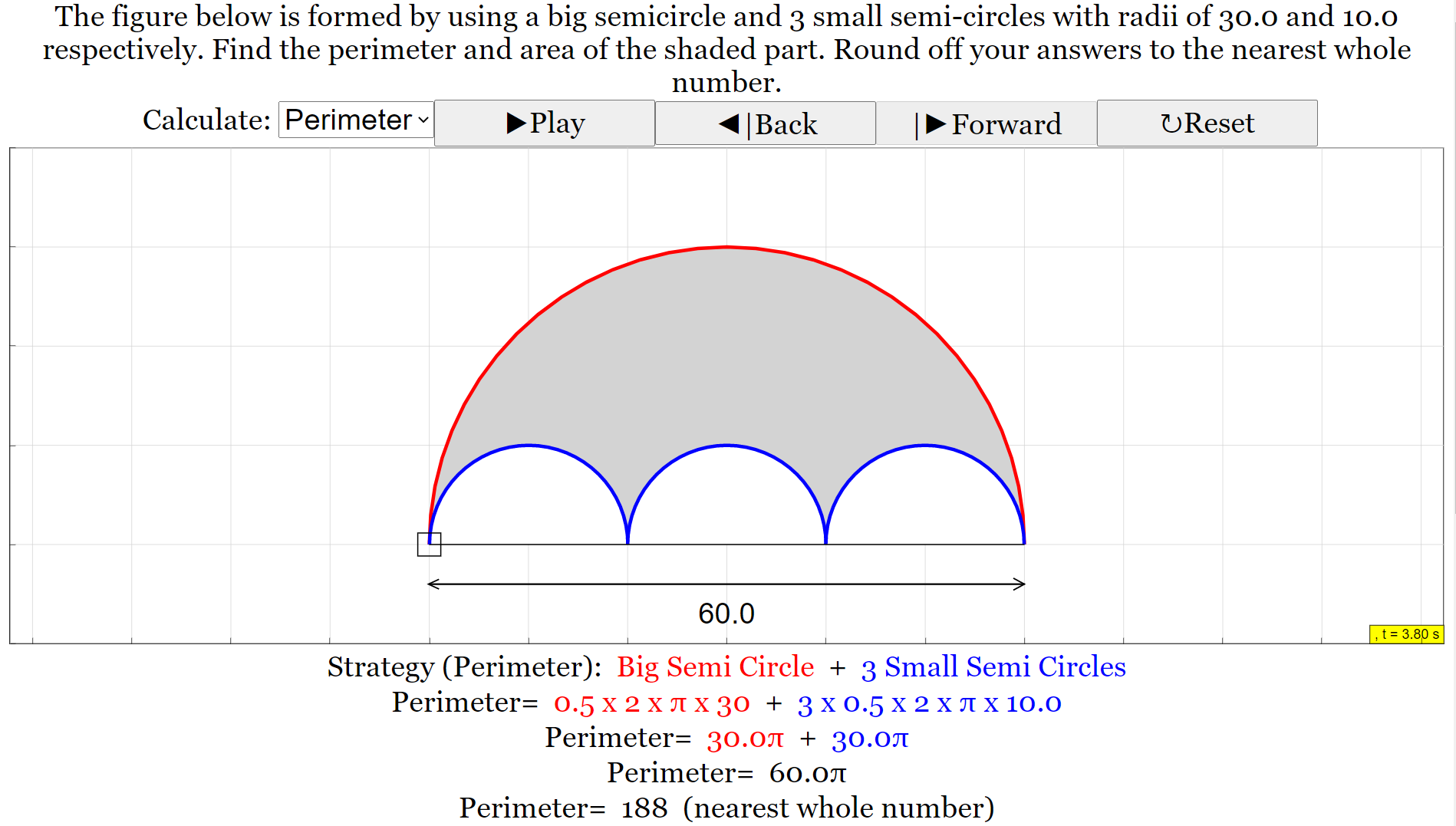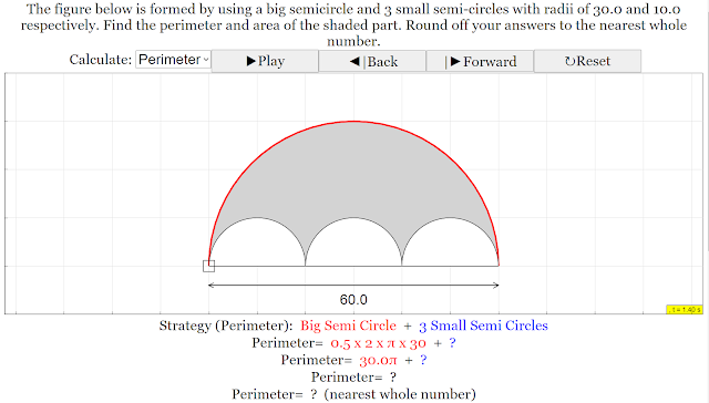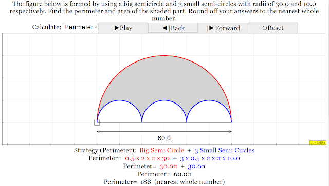 - From "Circle Plus Question 08 HTML5 Applet Javascript": "Initial Setup. User can toggle Perimeter and Area to find out how to solve the question. Page-turner is provided for step-by-step animation." (Description for teachers)