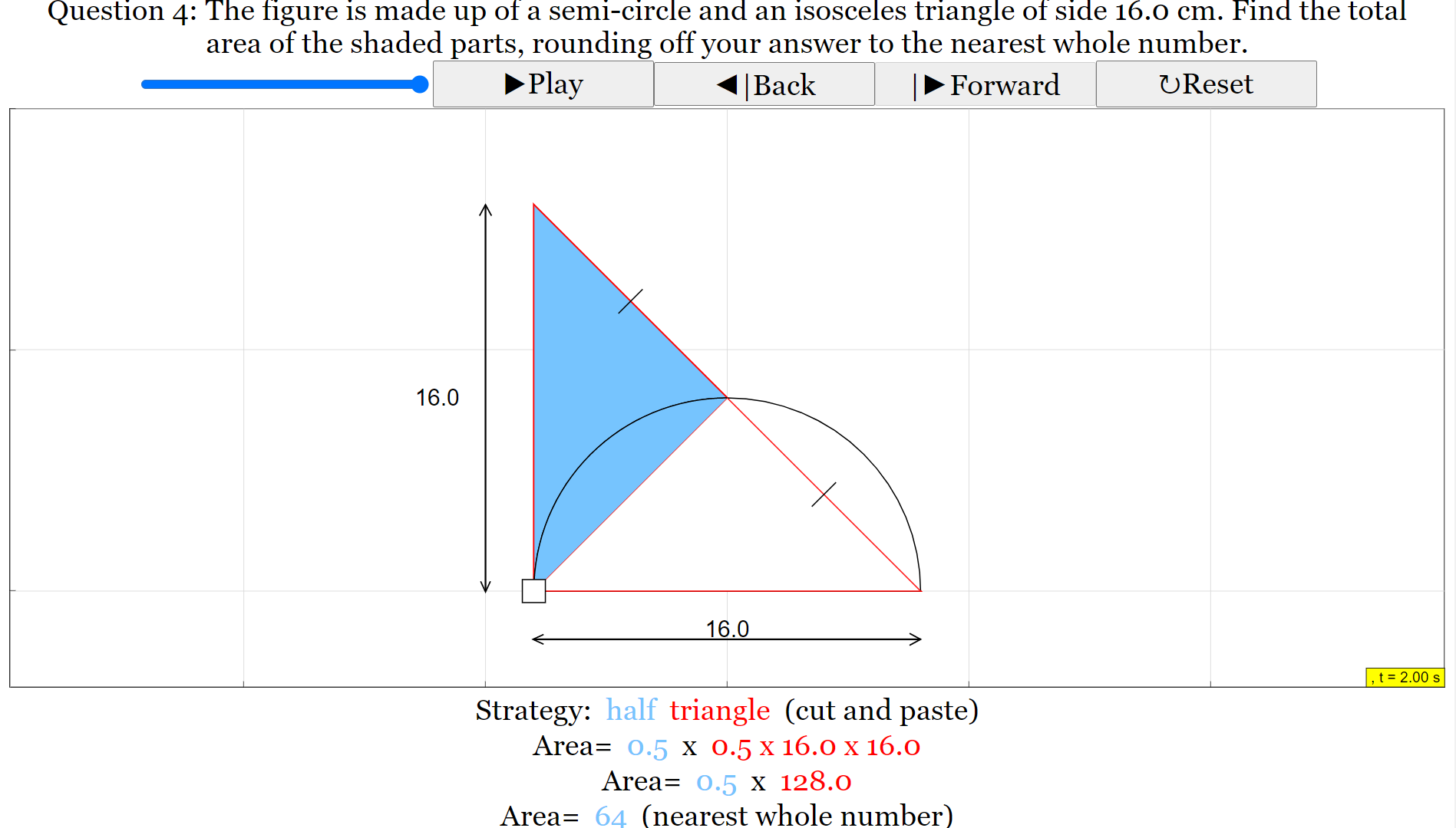 - With the complete triangle formed by the animation, the user is able to solve the question easily, suggesting the question likely involves the area or perimeter of a shape related to a triangle and a circle.