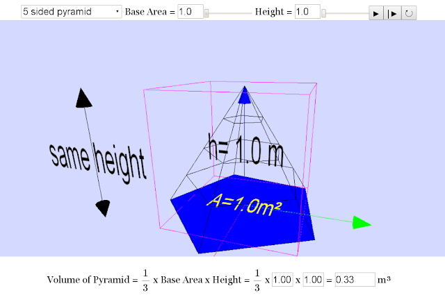 Toggle the arrows to view 5-sided pyramid in 3D Volume of Pyramid in 3D WebGL JavaScript HTML5 Applet Simulation Model https://sg.iwant2study.org/ospsgx/index.php/554 |