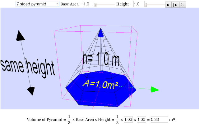 Toggle the arrows to view 7-sided pyramid in 3D Volume of Pyramid in 3D WebGL JavaScript HTML5 Applet Simulation Model https://sg.iwant2study.org/ospsgx/index.php/554 |