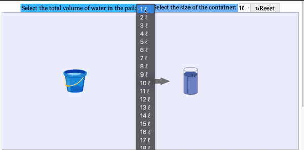 Read more: 🧪Virtual Lab for volume of water in pail into 1 litre, 2 litre, 5 litre and 10 litre