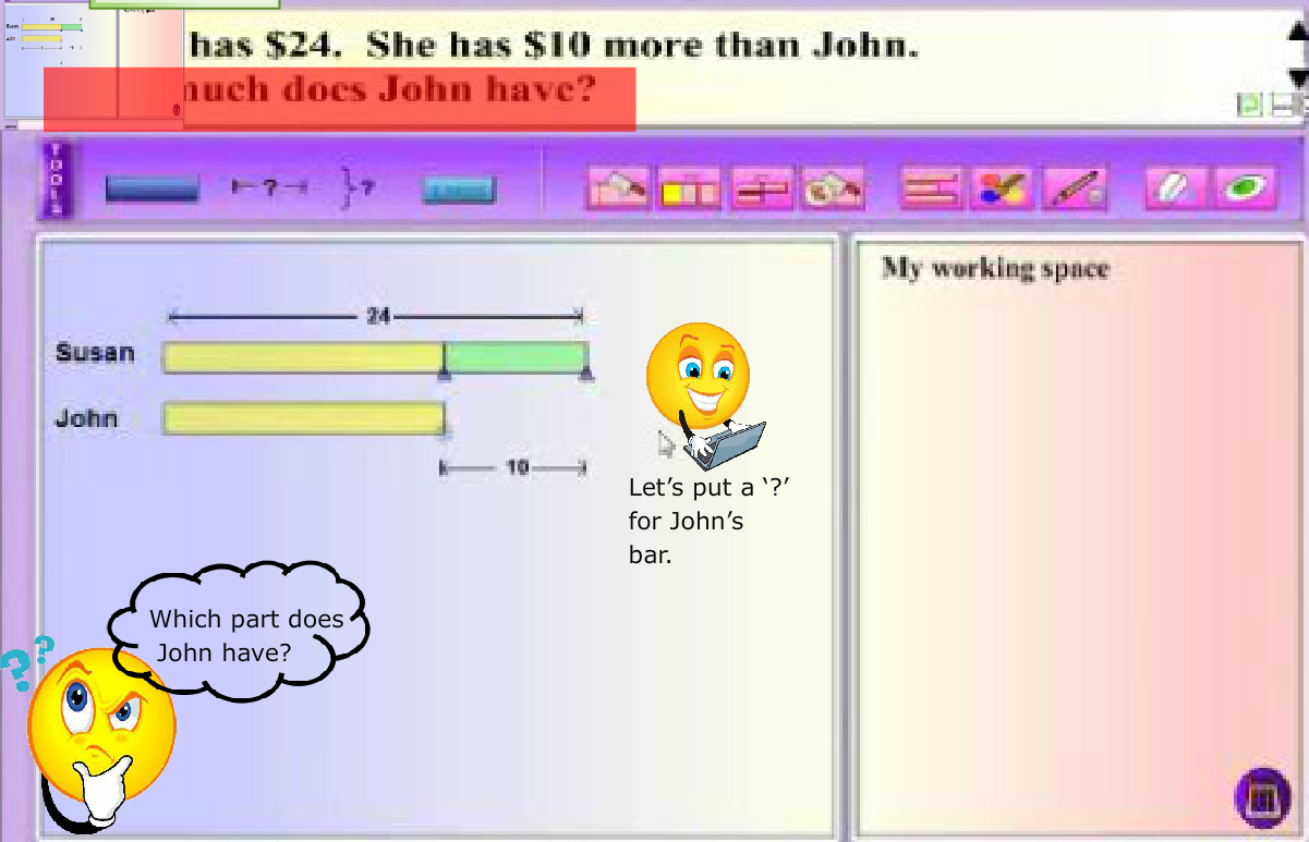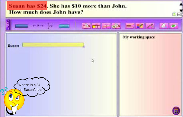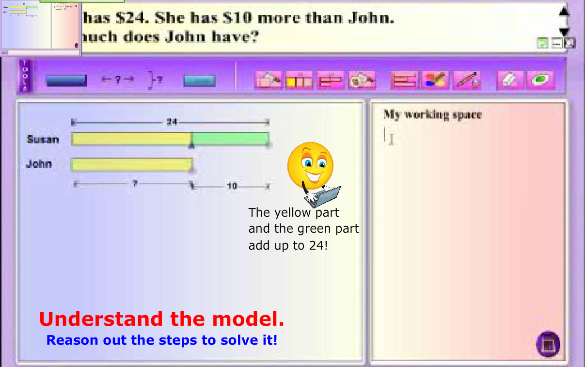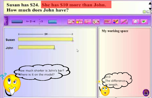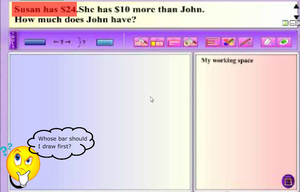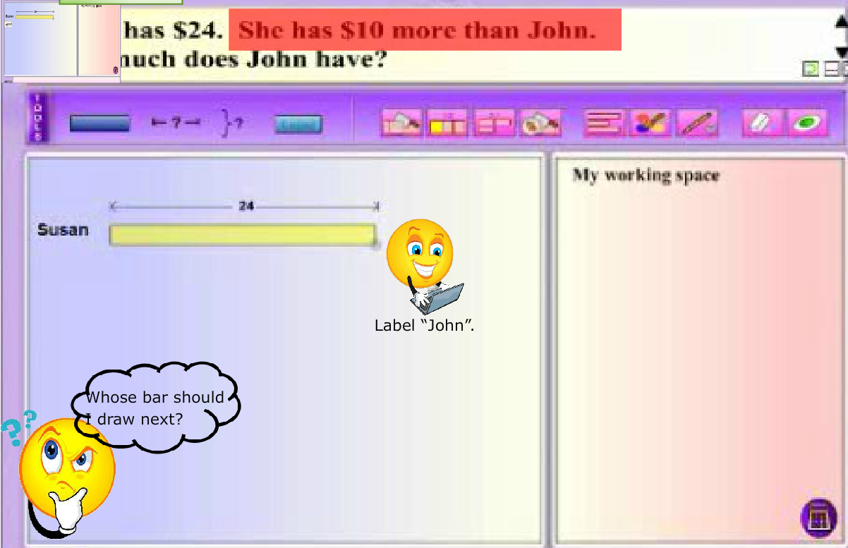 Modeling thinking aloud combines elements of both systematic and explicit instruction, and posing questions. MaPS, with its dynamic visuals and interactive capability, is effective in providing the visual support for students to make the connection between knowns and unknowns in a word problem.
