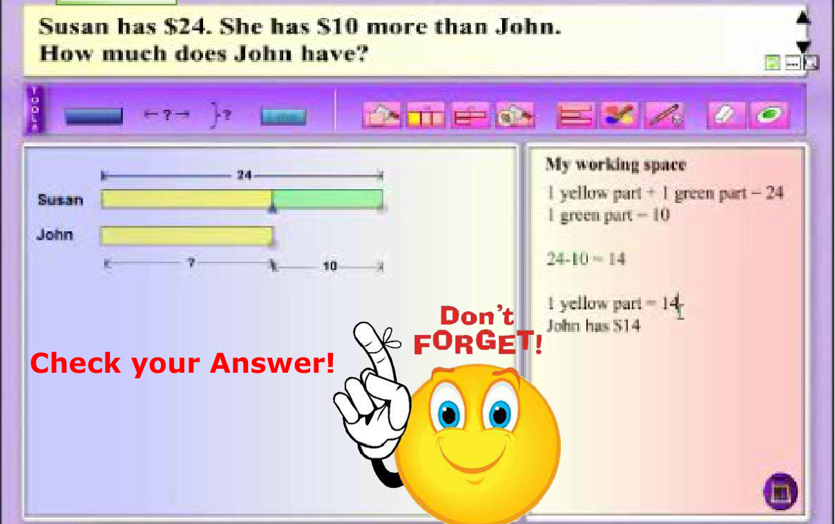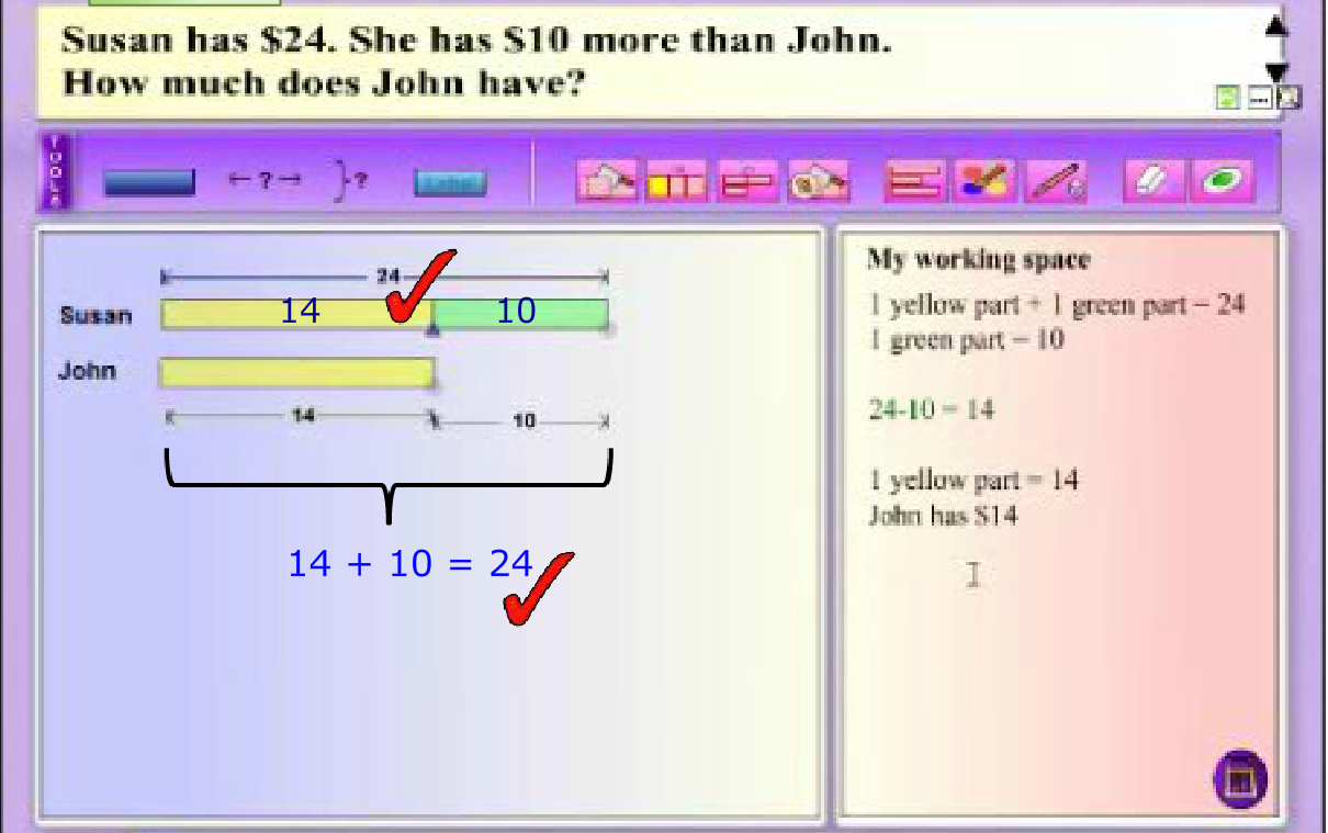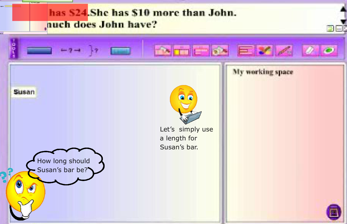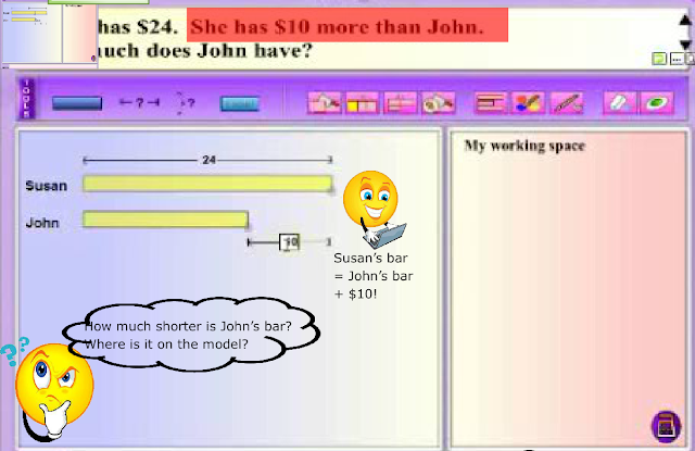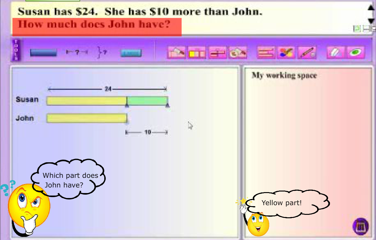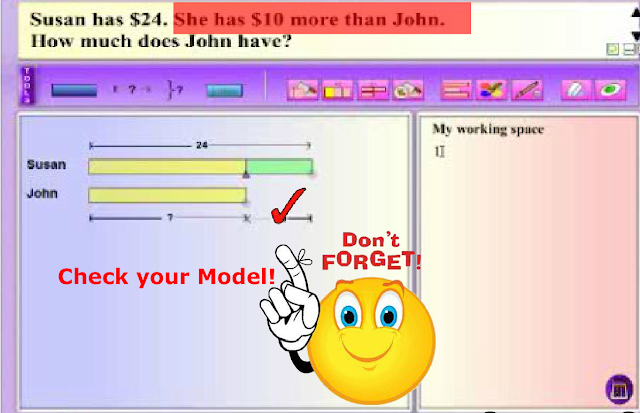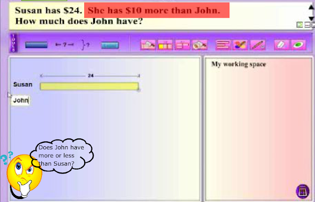 Modeling thinking aloud combines elements of both systematic and explicit instruction, and posing questions. MaPS, with its dynamic visuals and interactive capability, is effective in providing the visual support for students to make the connection between knowns and unknowns in a word problem.