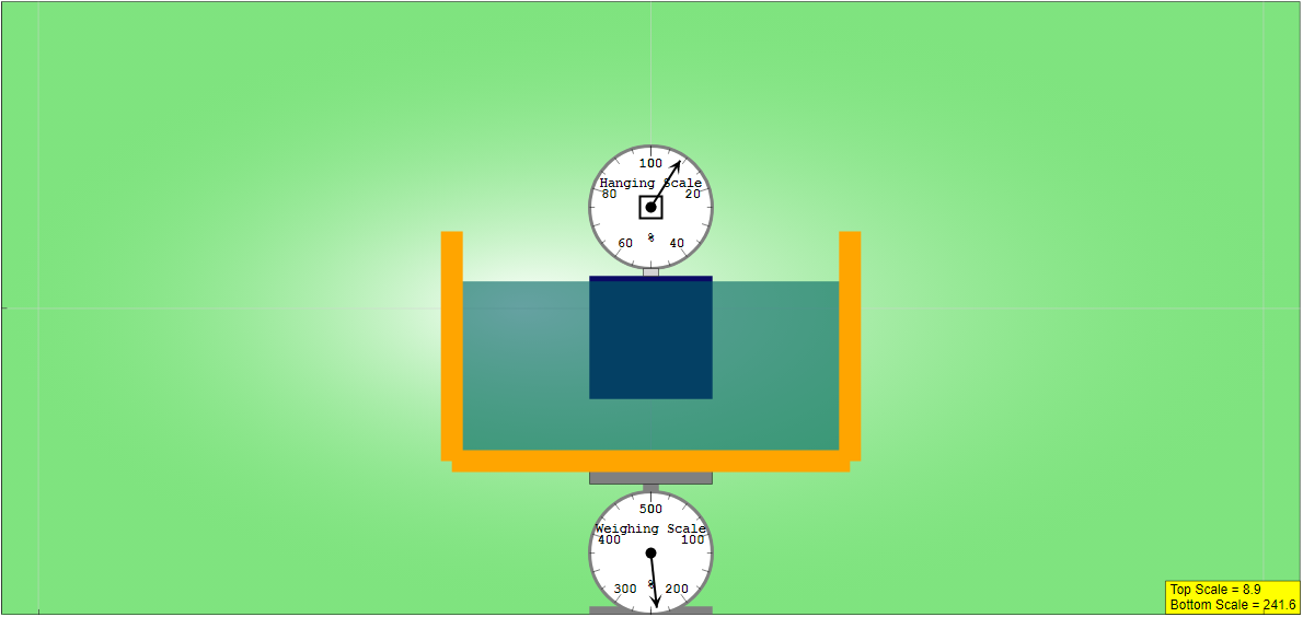 Buoyancy Force on Mass JavaScript Simulation Applet HTML5