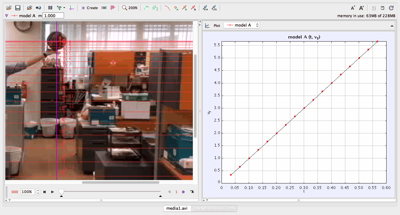 - A Tracker feature for creating theoretical models and comparing them with experimental data.