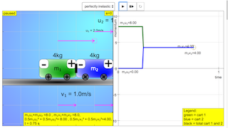 - Elastic Collisions: Collisions where both momentum and kinetic energy are conserved. The simulation allows the user to observe these conservation relationships in a "Perfectly elastic collision".