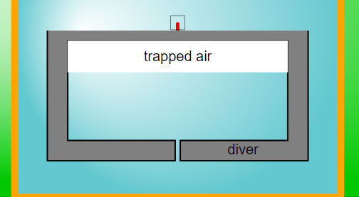 - Pressure: The force exerted per unit area by a fluid. In the context of the simulation, it refers to the force exerted on the air bubble within the diver and the surrounding water.