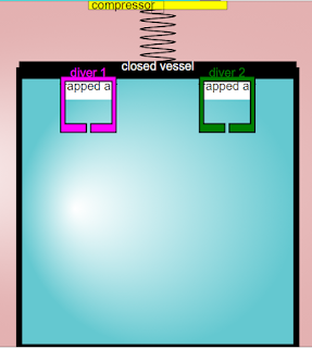 - If the diver sinks when the container is compressed, it indicates that the diver's average density has become greater than the density of the water due to the compression of the air bubble.