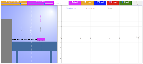 - The "Horizontal spring energy graph" simulation models the behavior of a mass attached to a horizontal spring, likely exploring concepts of energy transfer and oscillation.