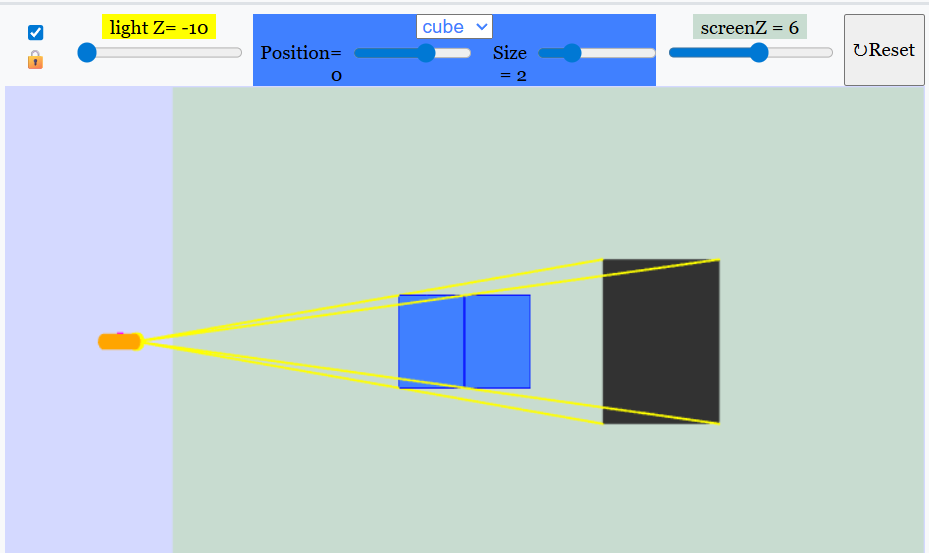 - Description of the interactive: "This is a simple interactive to model the cast shadows of objects, in this case a cube and a sphere, when illuminated by a light source." (Source 1)