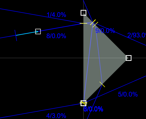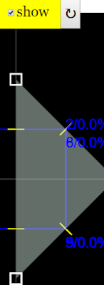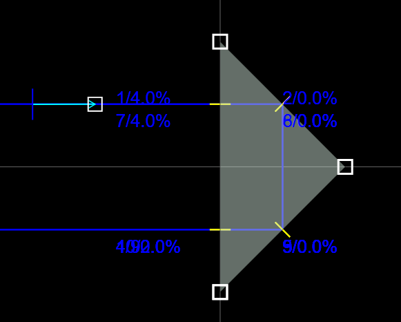 - The "Show" checkbox toggles the display of yellow lines, which represent the line of reflection within the prism. This helps visualize the path of light as it reflects inside the prism.