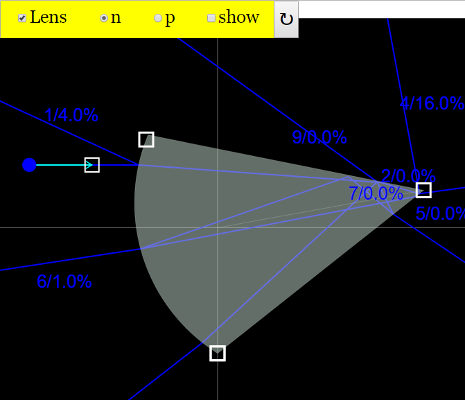 - The "n" and "p" radio buttons control the type of light source. Selecting "n" makes the source a point, while "p" makes it a vertical line.