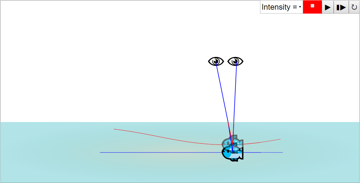 - The simulation allows users to drag the fish to change its submerged location. Similarly, the eyes representing the observer's viewpoint, can also be dragged to change their position.
