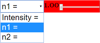 - "Selecting an option in the combo box will display their respective functions. Intensity toggles with a check box n1 and n2 toggles with sliders (changes the position of the image)"