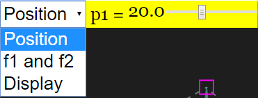 - "Combo Box, Sliders and Check Boxes Toggling through the combo box will give you their respective options Position and f1 and f2 options gives sliders While display gives check boxes"