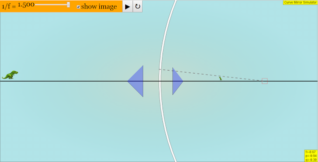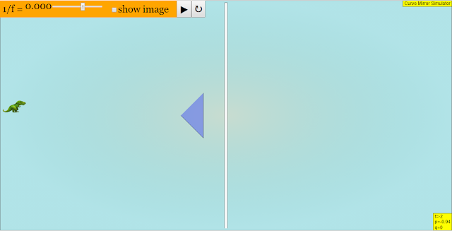 - Curvature Adjustment: A primary feature is the ability to adjust the curvature of the mirror using a slider control. The documentation states: "This can be done by adjusting the slider 1/f. (Default) (Adjusting to the left will curve the mirror towards the object) (Adjusting to the right curves the mirror away from the object)." The effect of this adjustment on the image is immediately visible, reinforcing the relationship between curvature and image formation.