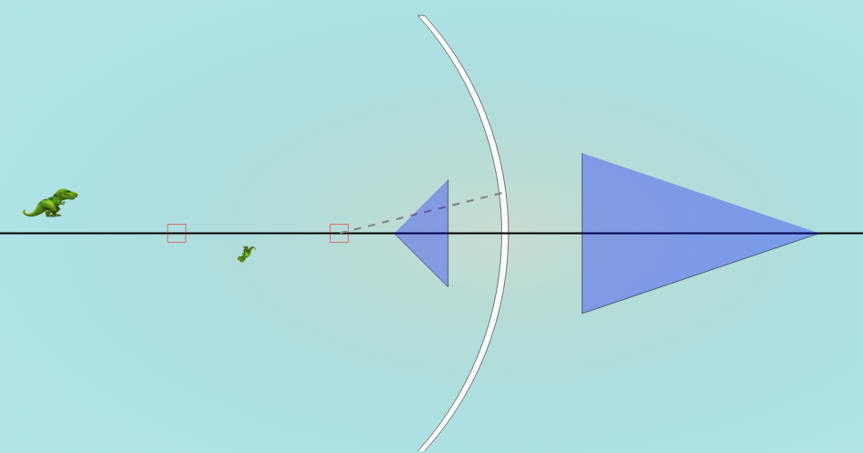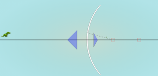 - Object Manipulation: Users can drag the object being reflected to different positions, allowing them to explore how object distance affects the image. "This can be done by dragging the object (on the left) anywhere on the left. (examples of the possible dragged locations)"