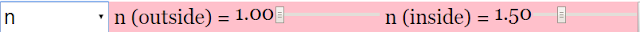 - The combo box allows you to select display, curvature, n, polygon, and ray options.