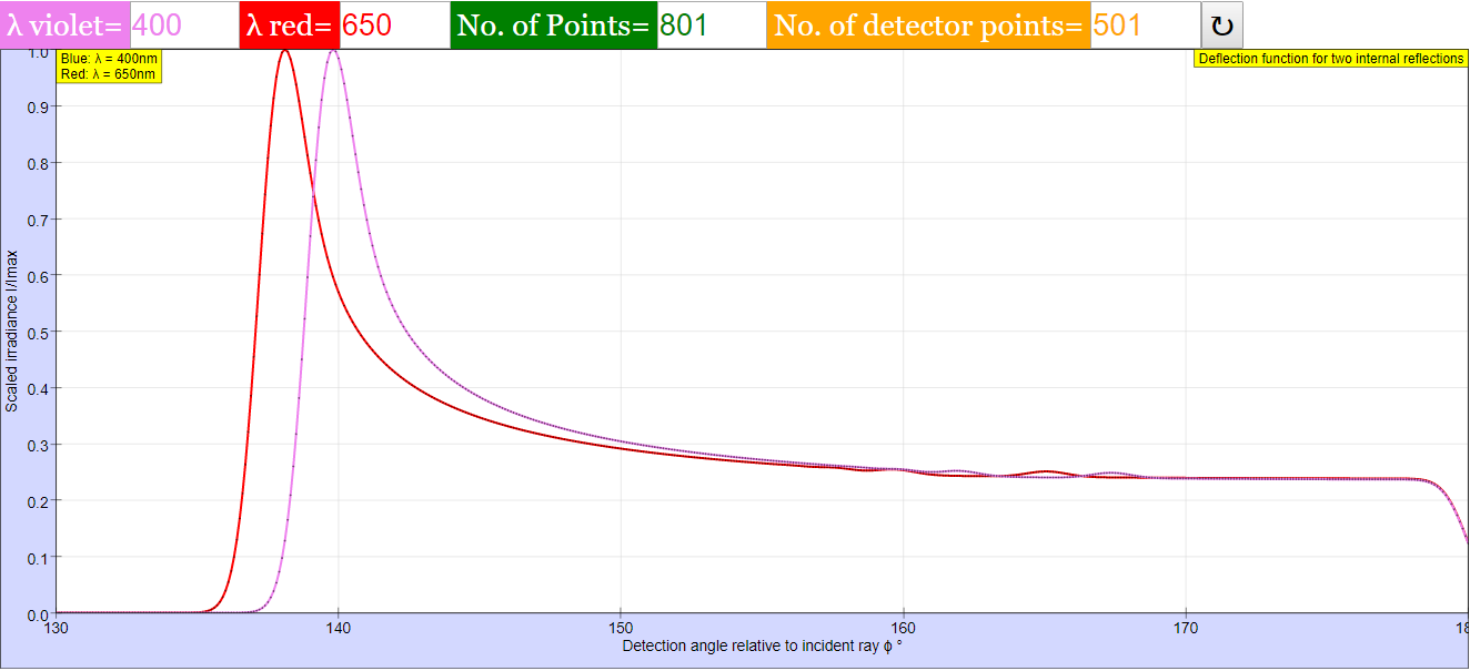 EXERCISE 5: CRUDE ESTIMATE OF THE IRRADIANCE VERSUS DEFLECTION ANGLE FOR A SINGLE WAVELENGTH: PRIMARY RAINBOW