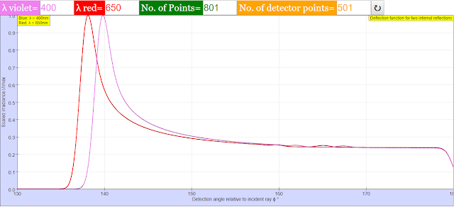 - Rainbow Scattering: The accumulation of irradiance in specific directions corresponding to the minima in the deflection function, resulting in the bright bands of a rainbow.