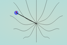 - Oscillation: A repetitive variation, typically in time, of some measure about a central value (often a point of equilibrium) or between two or more different states. The simulation allows control over whether the charged particle oscillates.