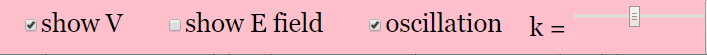 - "The oscillation check box toggles if the particle oscillates or not" - Enables or disables the oscillatory motion of the charged particle.