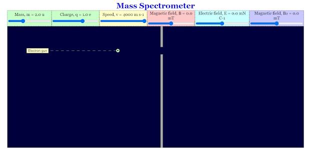 - About the Mass Spectrometer Simulation: "This is the simulation of a mass spectrometer where students are allowed to manipulates mass, charge, speed, magnetic field, electric field" (Open Educational Resources / Open Source Physics @ Singapore).