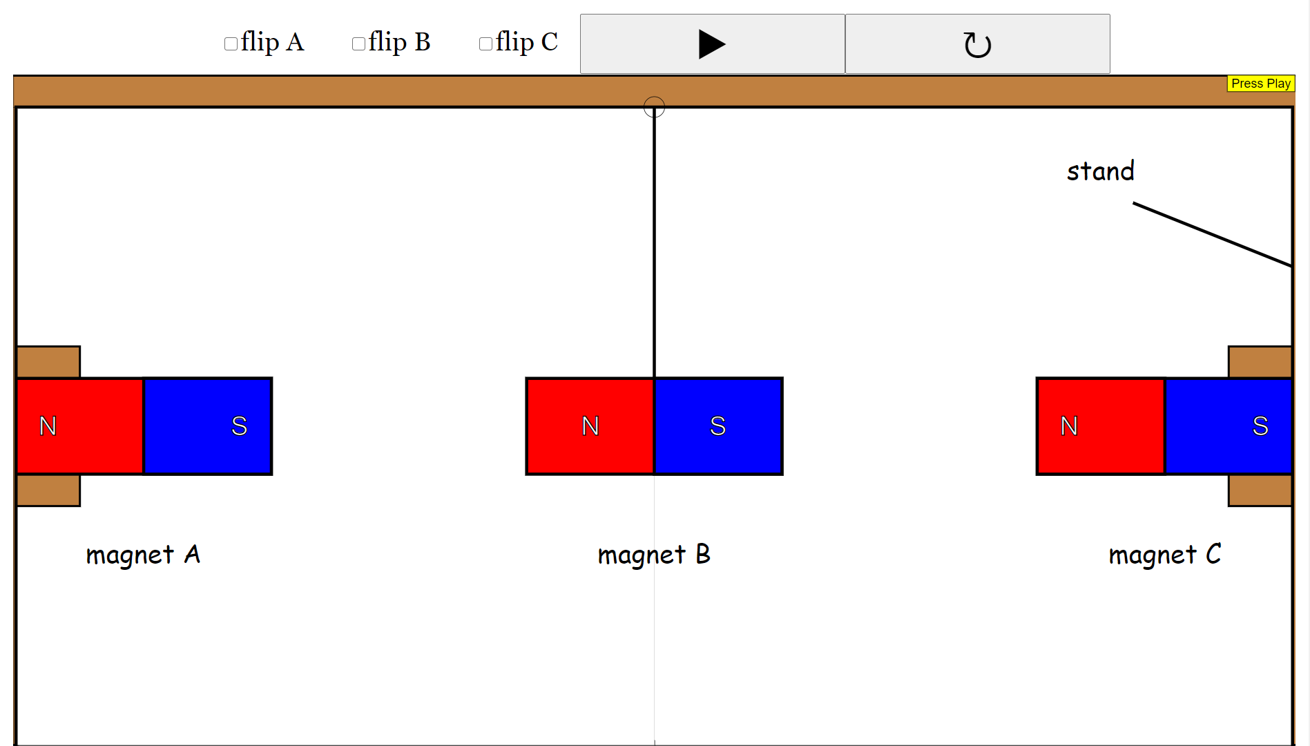 - Flipping the polarity of magnet C will change the force it exerts on magnet B, thus altering the interaction between magnet A and magnet B (which is influencing B's swing). It will switch between attraction (unlike poles) and repulsion (like poles).