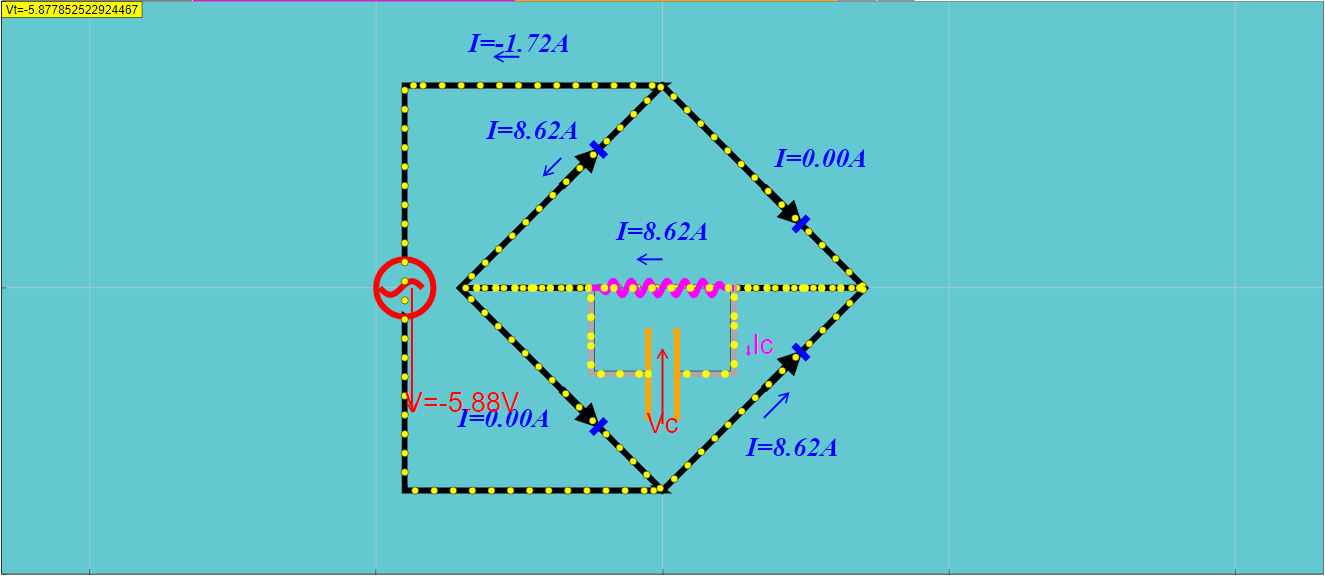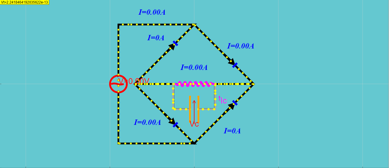 The moving dots simulate the drift motion of election in the circuit. Added a capacitor to filter out the ripple